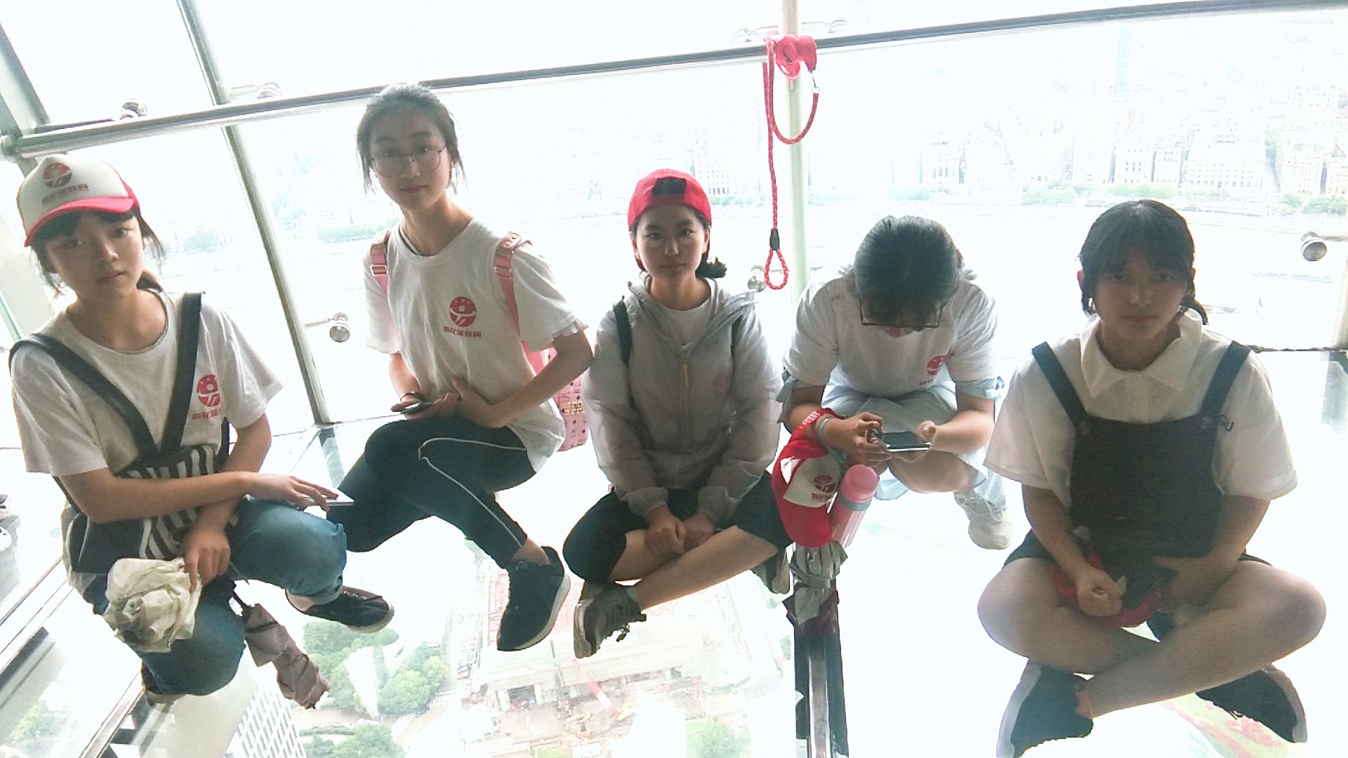 东方明珠玻璃观光走道,切切实实的体验到了云空漫步的美妙意境,像在空中飞一样。孩子们勇敢的走上去合影。